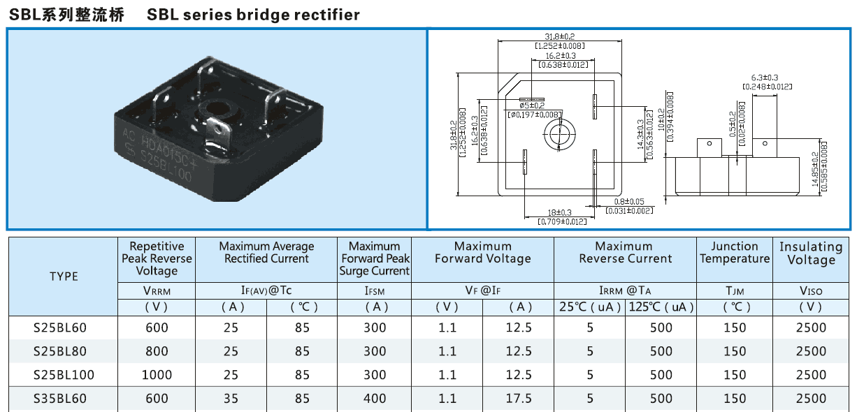 整流橋堆就是將整流管封在一個(gè)殼內(nèi)了。分全橋和半橋。全橋是將連接好的橋式整流電路的四個(gè)二極管封在一起。半橋是將兩個(gè)二極管橋式整流的一半封在一起,用兩個(gè)半橋可組成一個(gè)橋式整流電路,一個(gè)半橋也可以組成變壓器帶中心抽頭的全波整流電路,選擇整流橋要考慮整流電路和工作電壓。