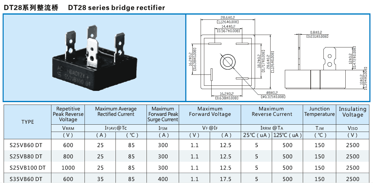 整流橋堆就是將整流管封在一個(gè)殼內(nèi)了。分全橋和半橋。全橋是將連接好的橋式整流電路的四個(gè)二極管封在一起。半橋是將兩個(gè)二極管橋式整流的一半封在一起,用兩個(gè)半橋可組成一個(gè)橋式整流電路,一個(gè)半橋也可以組成變壓器帶中心抽頭的全波整流電路,選擇整流橋要考慮整流電路和工作電壓。