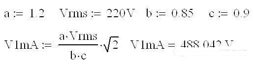 3、b為壓敏電阻誤差,一般取值0.85.